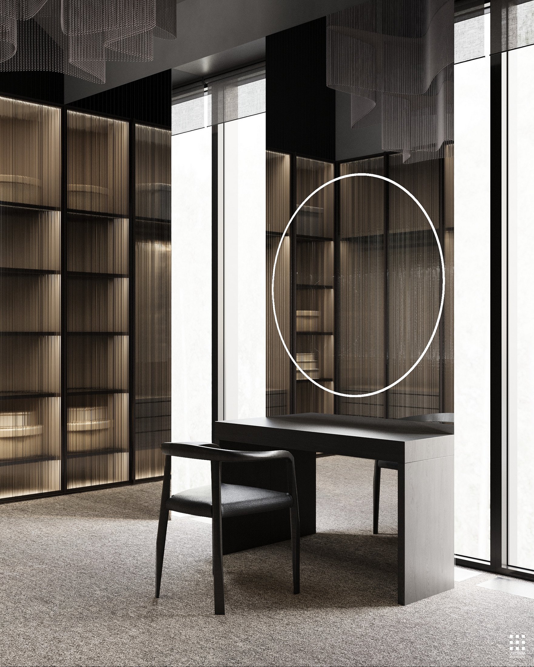 Сложный, материальный интерьер с объёмной пластикой, где ключевую роль играют свет и текстура. В пространстве большого метража стояла задача создать не просто визуально впечатляющий интерьер, но гармоничное сочетание уюта и роскоши, где масштаб не подавляет, а наполняет пространство атмосферой приватности и комфорта.